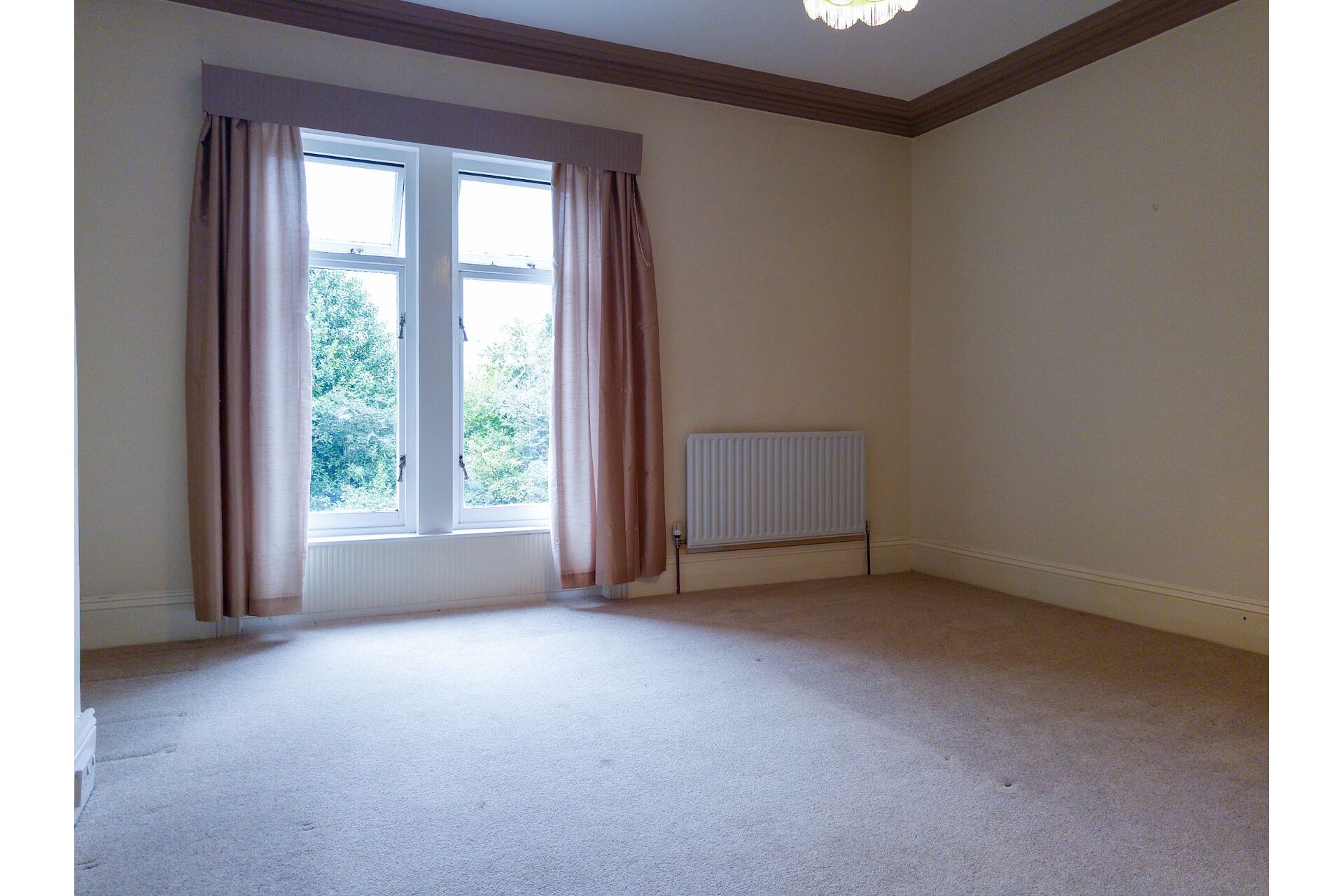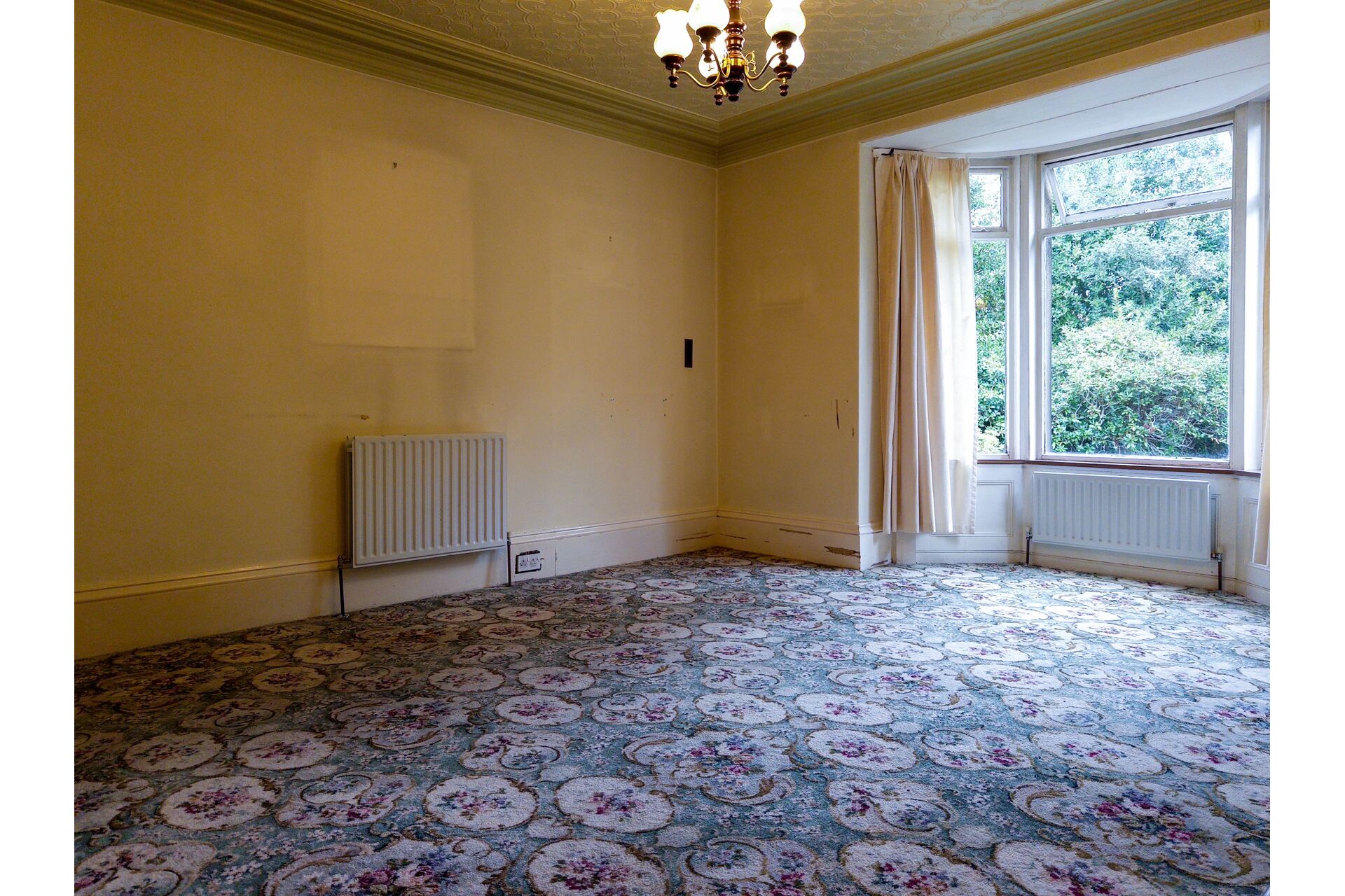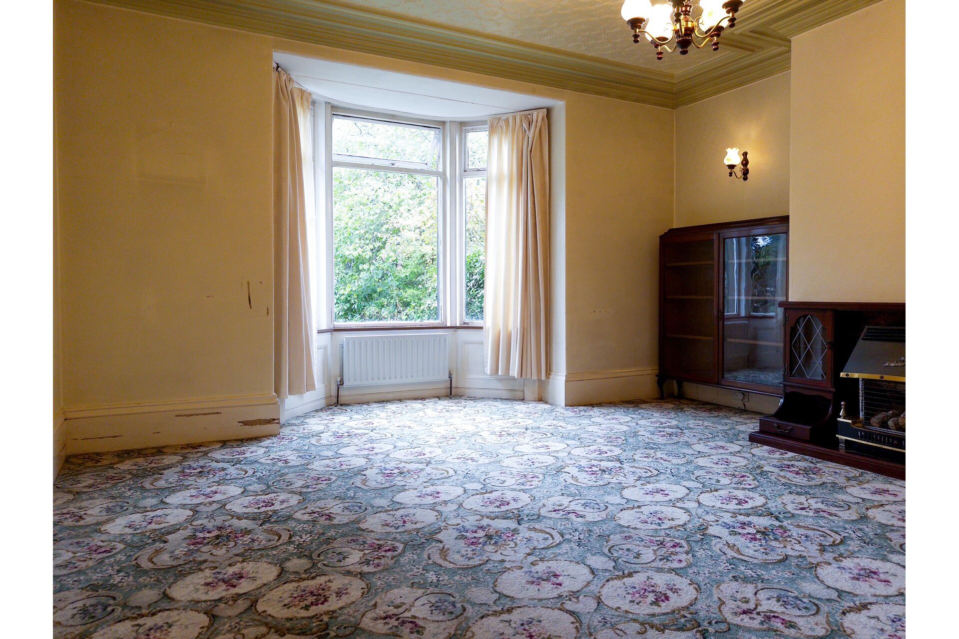 This was originally one room with the wet room but due to needing a bathroom on the ground floor, the room was split. The original deep ceiling cornice was retained should potential buyers which to reinstate the original room. There is a front bay single glazed window.