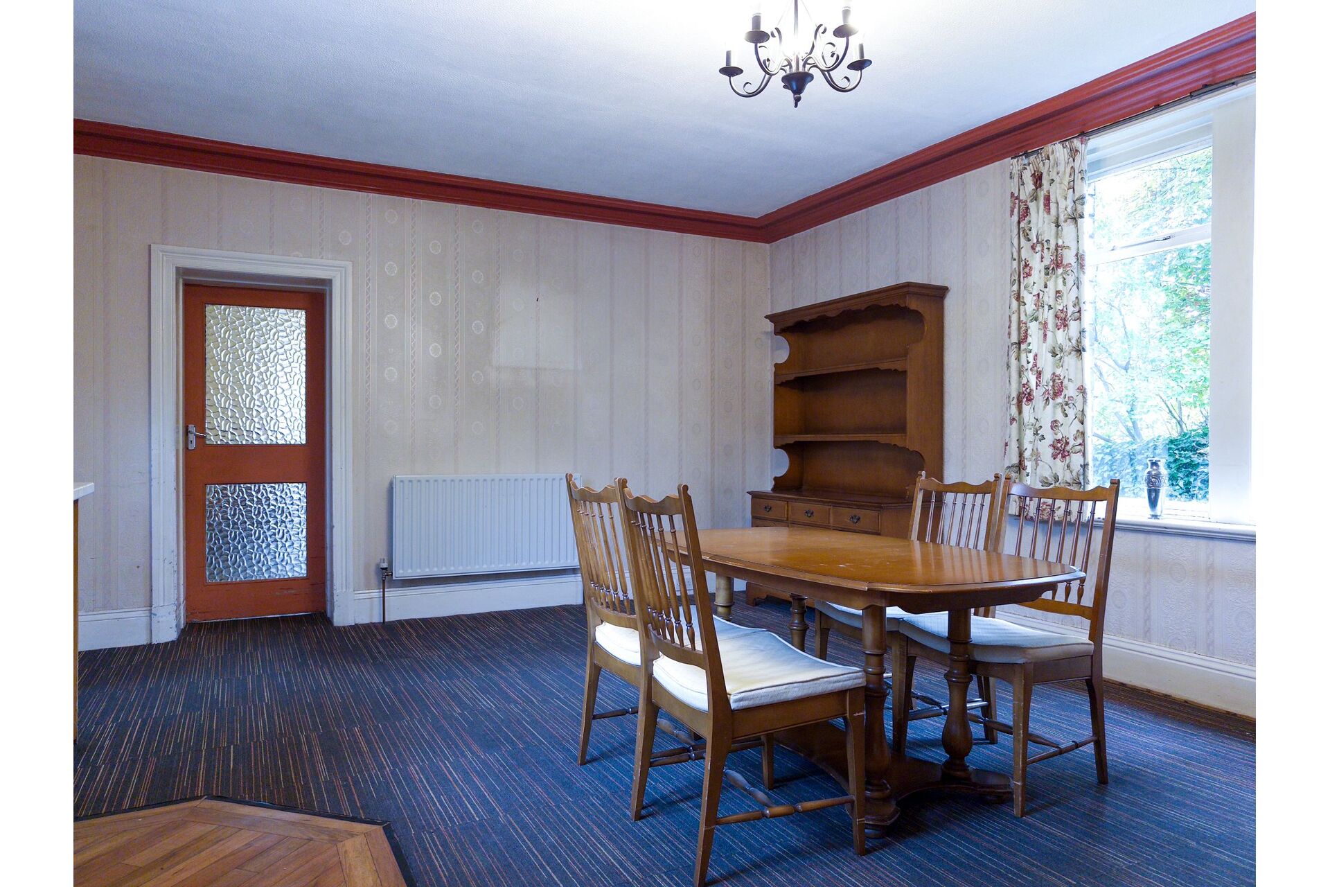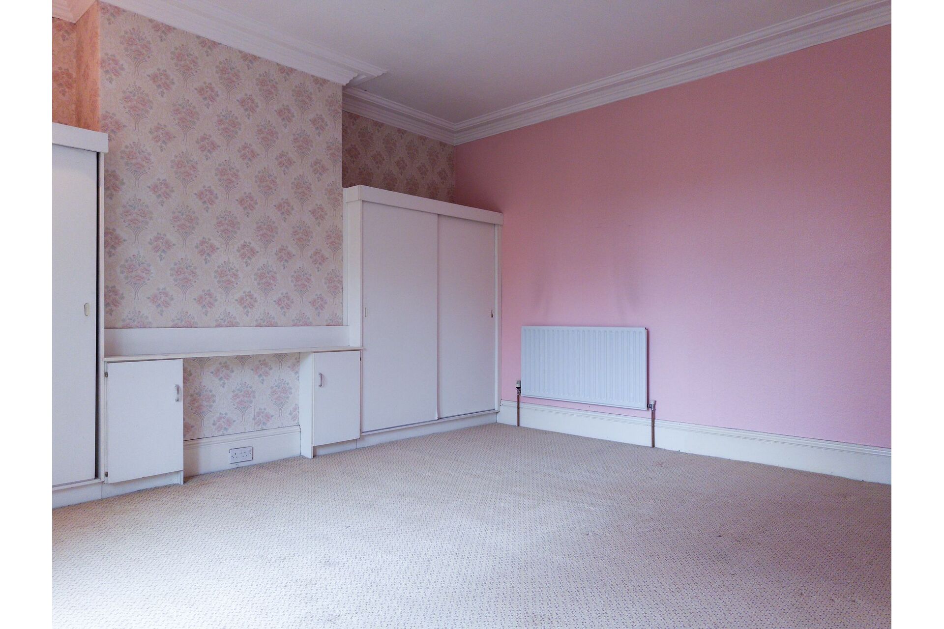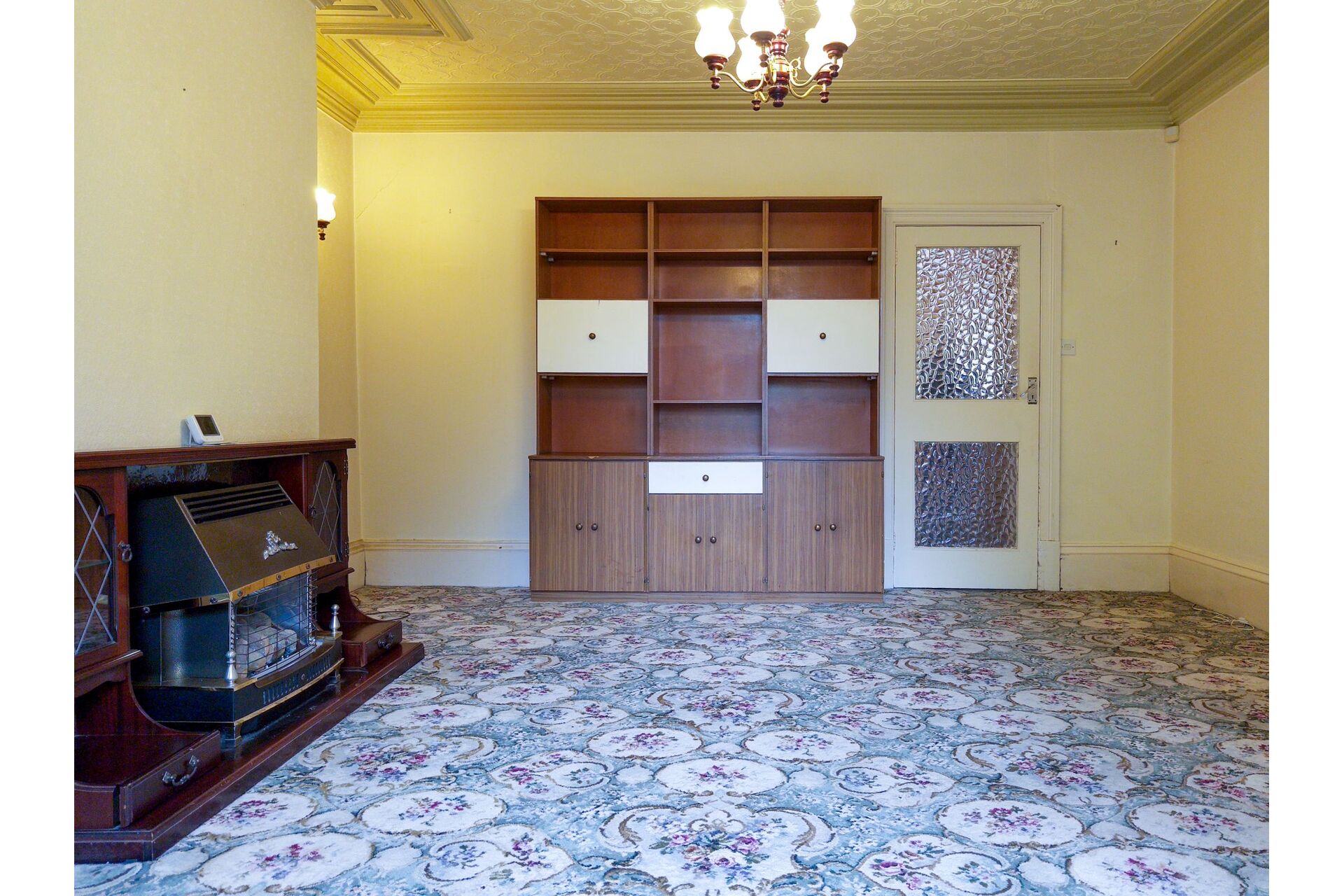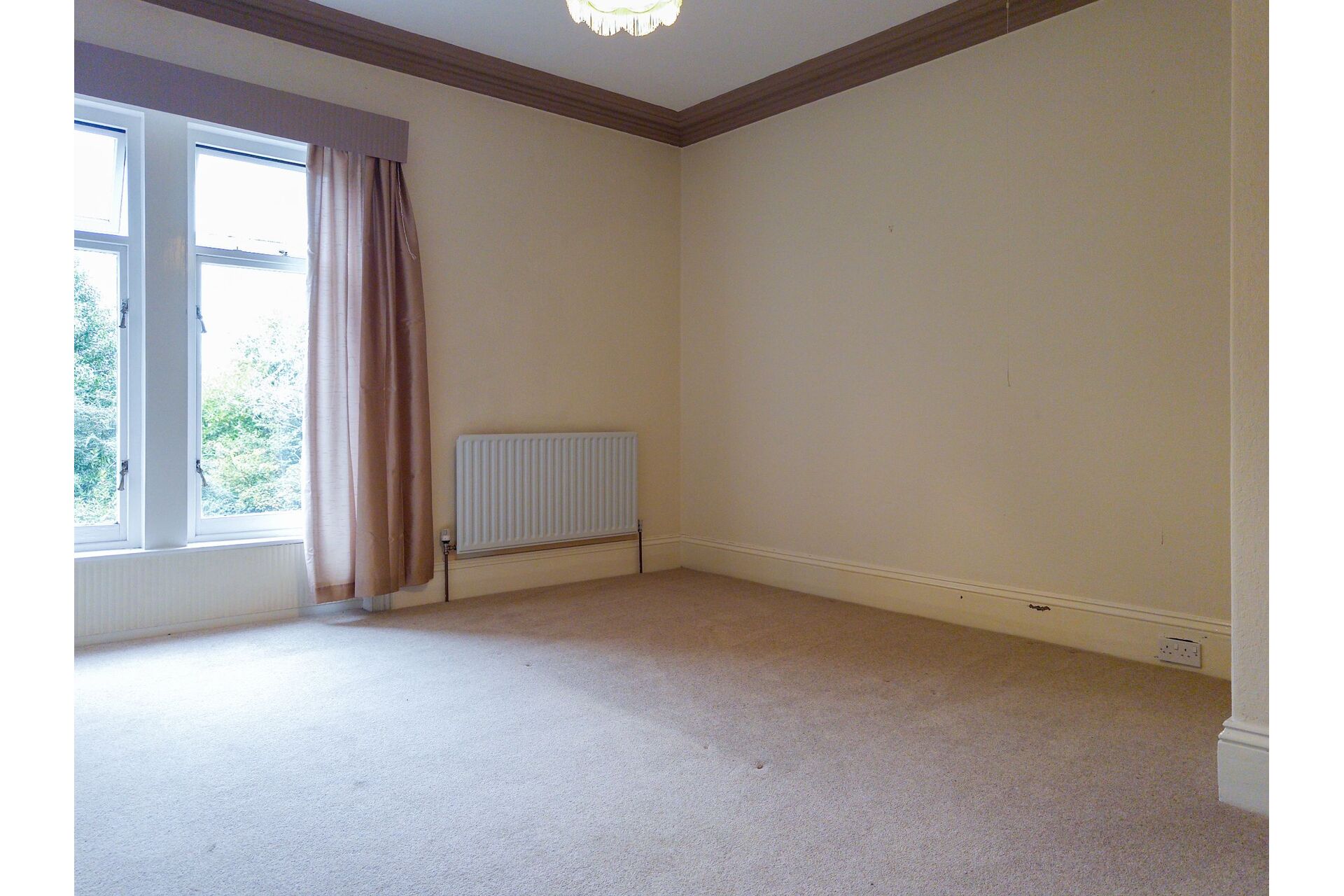 This was originally one room with the wet room but due to needing a bathroom on the ground floor, the room was split. The original deep ceiling cornice was retained should potential buyers which to reinstate the original room. There is a front bay single glazed window.