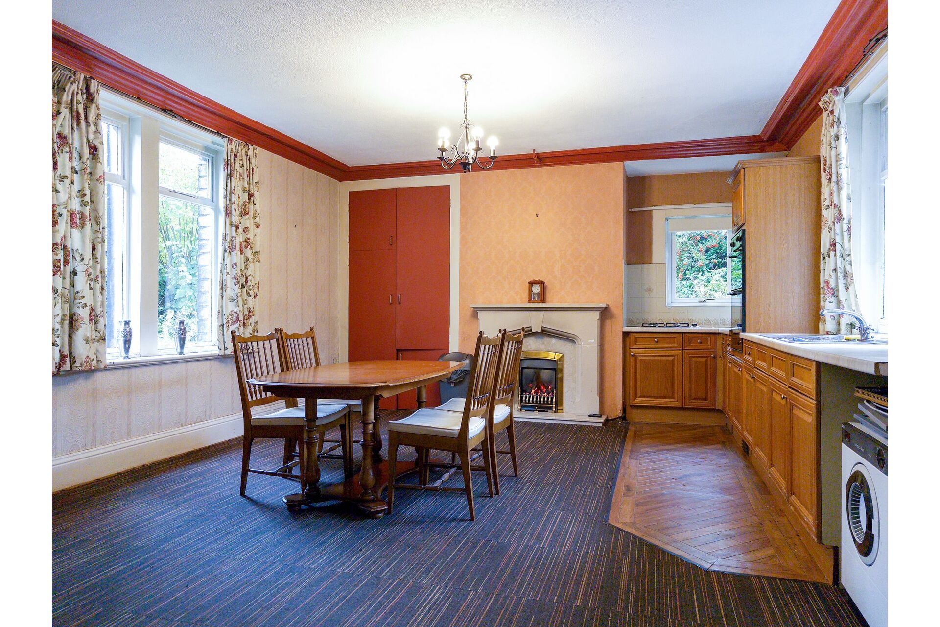 The heart of the family home, this sizable room serves as a great template for the prospective purchaser to create a stunning dining kitchen. Currently fitted with a range of wood effect base cabinet with work tops over. A highline unit houses the built-in electric oven and there is a gas hob. To the chimney alcove is an original full height cupboard. Single glazed windows to three aspects provide an abundance of natural light.