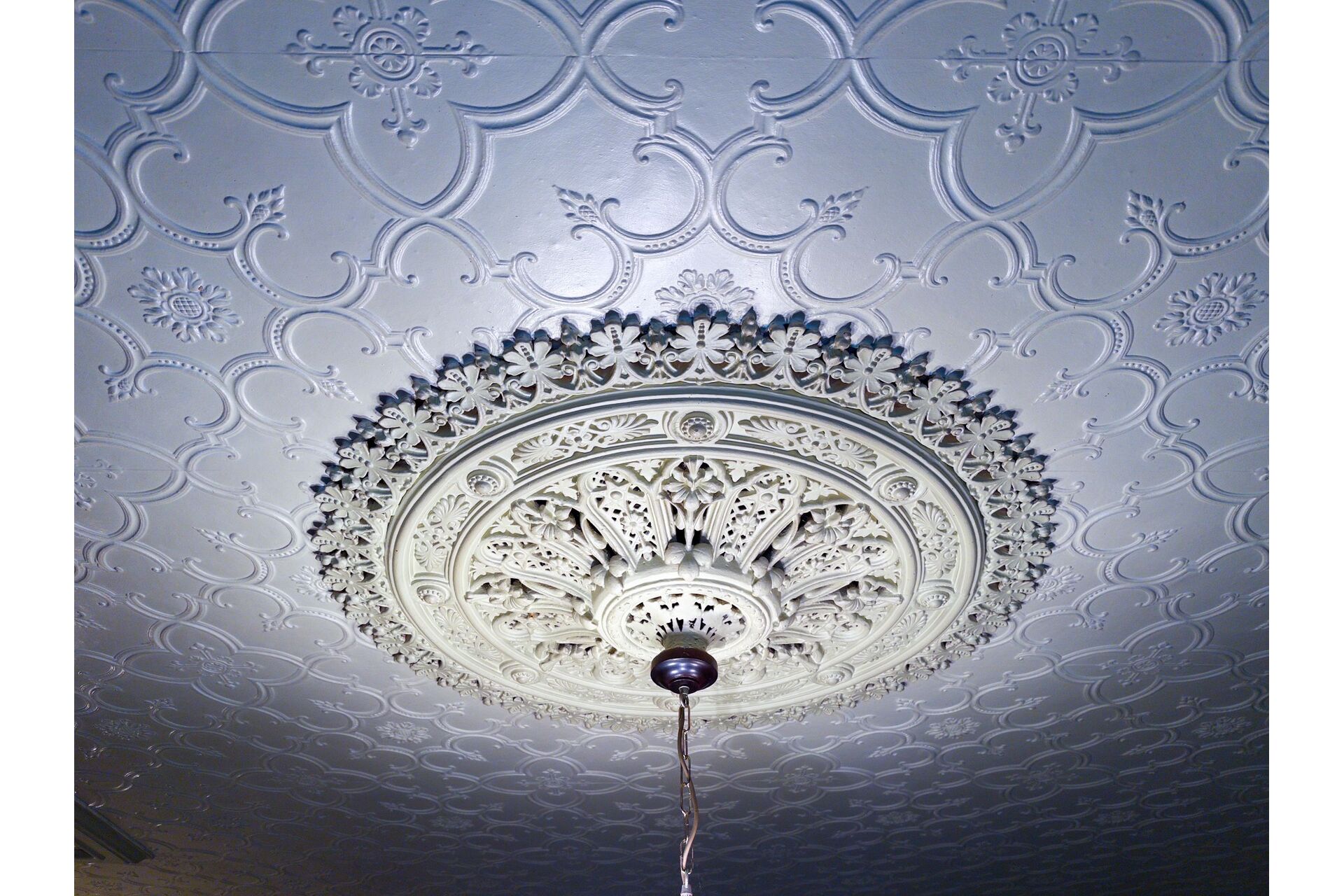A generous, well-proportioned living room boasting deep ceiling cornices and a decorative ceiling rose. A gas fire point and a front aspect single glazed bay window.