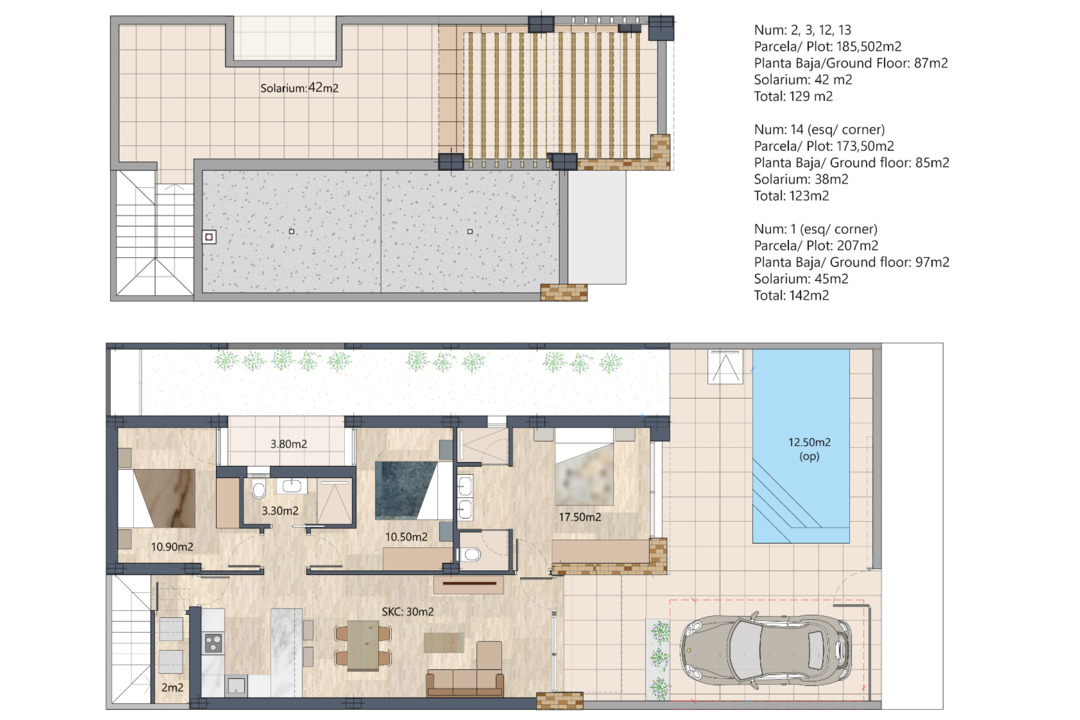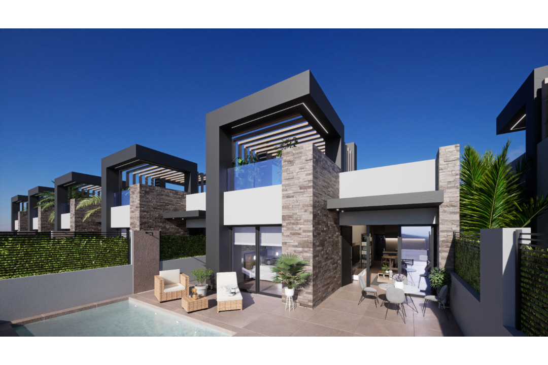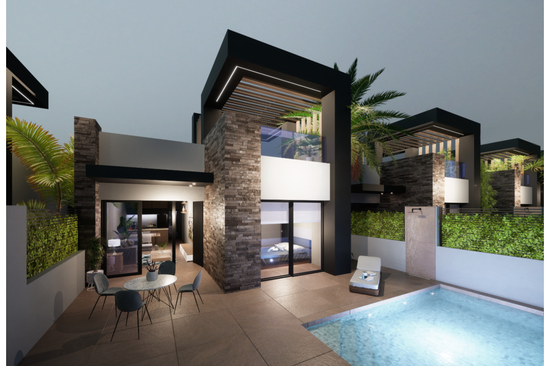 The modern villas have 3 bedroom 2 bathrooms, one of the bathrooms is en suite to the master bedroom and all rooms have fitted wardrobes. The living/ dining room has an elegant open plan kitchen with breakfast bar and we have made the ceiling higher to give a sense of space and light to this part of the house. A very important feature about the property is that it is all one level and just a short walk to San Fulgencio with all amenites.