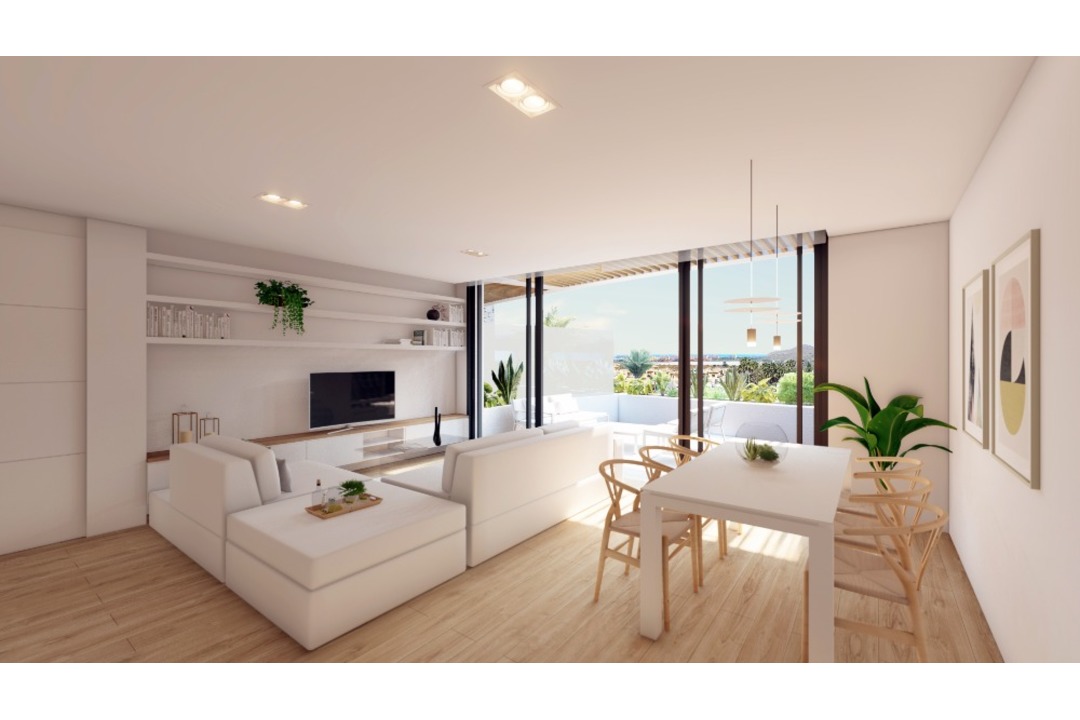 Luxury apartments with large terraces and located in La Manga Club. The apartments are finished to a high standard and have very high rental potential. These modern, light-filled residences afford stunning views of the Mar Menor and their spacious terraces and the community pool let you enjoy the Mediterranean sun to the fullest. Each apartment has its own private parking space and store room. Three bedroom apartments from 345.000