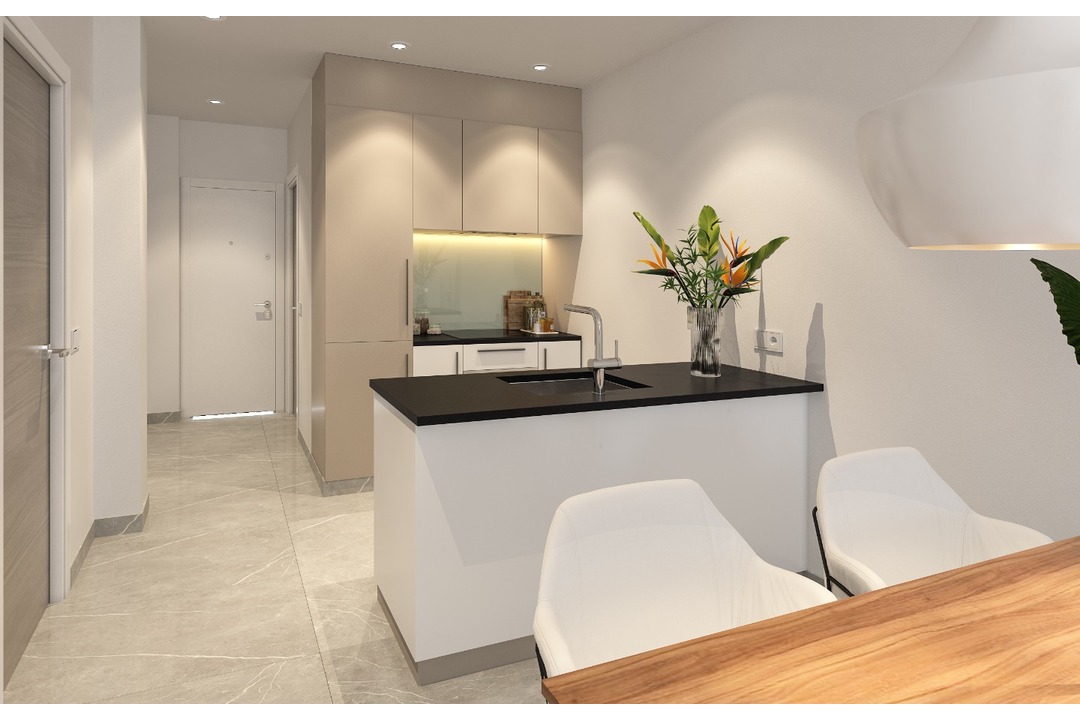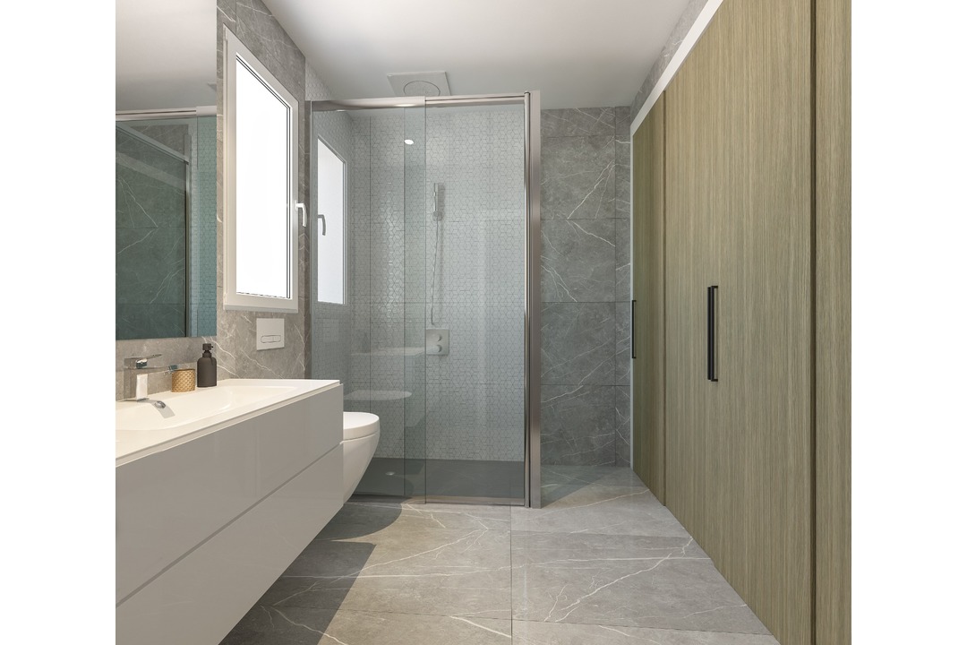 A new build development with 78 two and three bedroom bungalows. Every property looks out to the sea no matter where you decide to buy. The swimming pool complex is impressive in its size and quality with lifts down to it from every part of the complex. Tropical beach style, water jets and slides and full disabled access. Changing rooms, showers, sunbeds and waterfall make it your corner of paradise. Next to all of this your very own Fitness Centre/Social club with fitness classes, Caf and modern equipment. Plus after all of that there is a green zone with a kids area, outdoor gym and beautiful gardens to enjoy. One bedrooms from 111.000