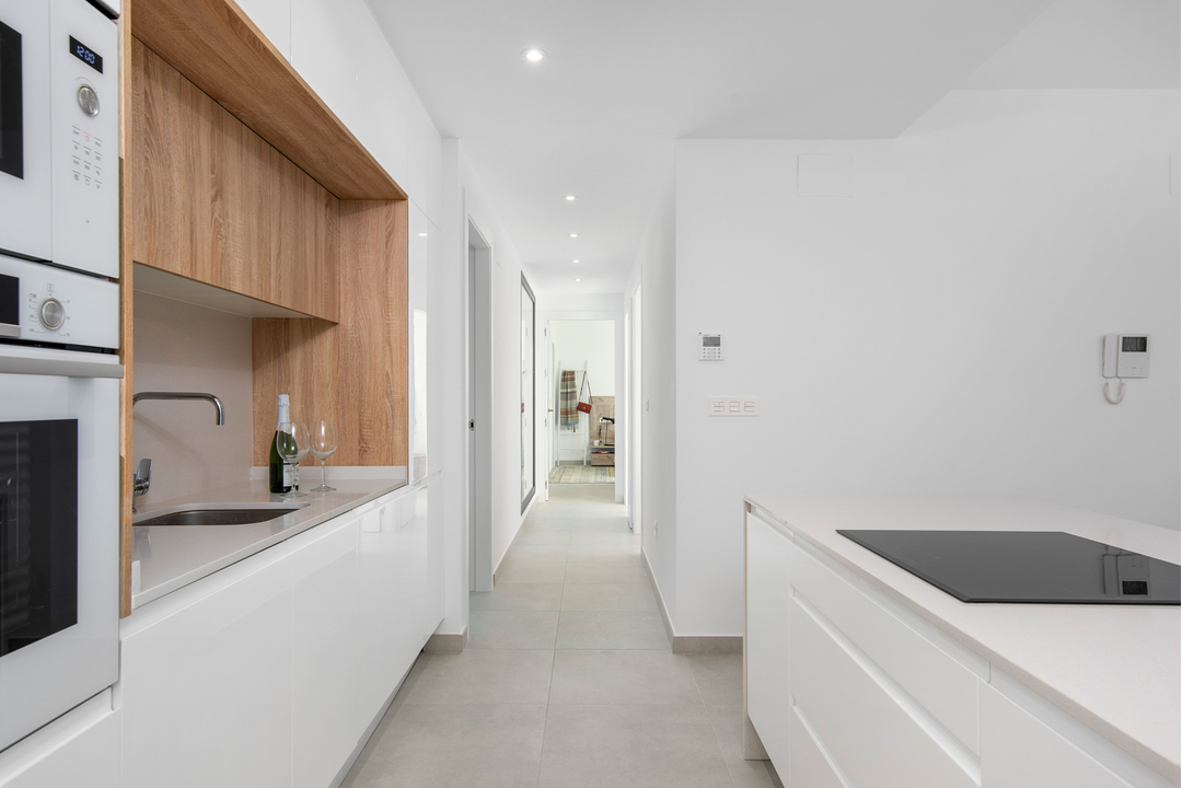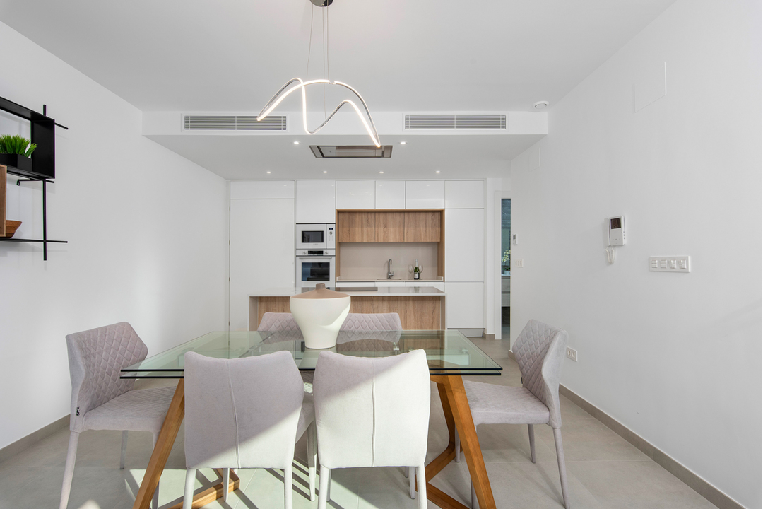 These modern style villas with living area, open kitchen fully furnished, 3 bedrooms, (one of those ensuite), 2 bathrooms and a large basement where you can materialize any desired space according to the needs of each client. Optional solarium. Private plot with access to the street, terrace, parking space and private pool. Mediterranean garden and a wonderful solarium with amazing views.