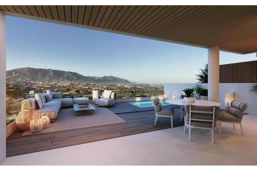 New Build Golf Front Apartments with Sea Views in La Cala de Mijas Exclusive Residential Living on the Front Line of La Cala Golf This exceptional new build residential complex is located on the front line of the renowned La Cala Golf Resort, offering panoramic golf and sea views in one of the most desirable areas of the Costa del Sol. Set in a peaceful natural enclave, the development is just 5 km, around 10 minutes by car, from the sandy beaches and vibrant promenade of La Cala de Mijas. This privileged location combines tranquillity, nature and easy access to coastal life. Modern Apartments Designed for Mediterranean Living The gated community consists of only 48 contemporary apartments distributed across four low rise buildings with ground, first and second floors. Homes are available with 2 or 3 bedrooms and benefit from a sought after south east orientation, maximizing natural light and open views. Ground floor and middle floor properties with big terraces or penthouses with private solariums. Selected groundfloors and penthouses have the option to add a private pool, creating a truly exclusive outdoor space. High Quality Interiors and Smart Comfort Each apartment has been designed with comfort and efficiency in mind. Interiors feature an open plan living and dining area with a fully furnished and equipped kitchen, creating a bright and functional living space. Bathrooms include modern furniture, mirrors and fixed shower screens. The homes are equipped with an advanced climate control system using aerothermal technology for domestic hot water and underfloor heating, as well as pre installation for home automation. Parking space and storage room are included with every property. Resort Style Communal Areas Residents can enjoy a full range of premium communal facilities designed to enhance wellbeing and leisure. The complex features two outdoor swimming pools including an infinity pool with sunbed area, landscaped gardens and peaceful relaxation zones. A complete wellness area includes a spa with jacuzzi, Turkish bath, sauna and hydrotherapy circuit. There is also a fully equipped gym, coworking space and a private gastro bar, offering the perfect balance between work, relaxation and social life. Prime Location on the Costa del Sol La Cala de Mijas is a highly popular coastal town known for its charming atmosphere, excellent restaurants, beach clubs and services. The area is also famous for its golf courses and natural surroundings, making it ideal for permanent living or investment. Key Distances La Cala de Mijas beach: 5 km La Cala Golf Club: front line location Marbella and Puerto Banus: 20 km Malaga city: 30 km Malaga International Airport: 35 km Your New Home Overlooking the Golf Course Awaits If you are looking for a modern apartment with sea and golf views in a secure and exclusive environment, this new development in La Cala de Mijas is the perfect choice. Contact us today for more information or to arrange a visit and discover your future home on the Costa del Sol. 519