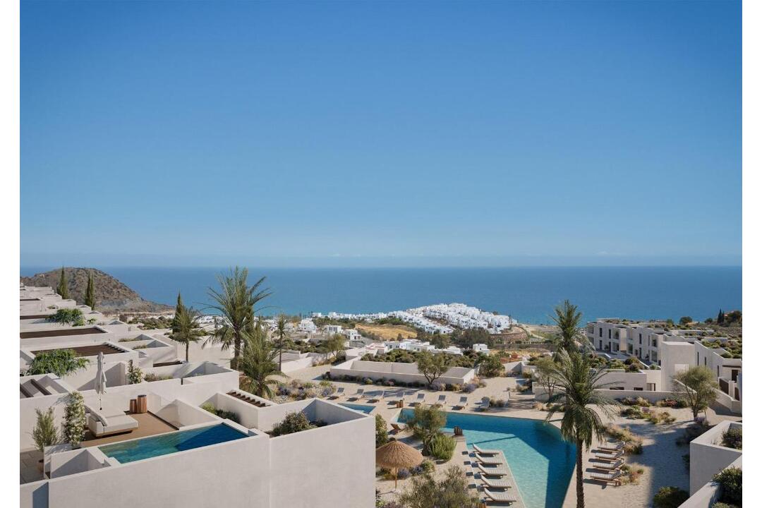 Panoramic views of the Mediterranean Sea in a beachfront resort New collection of 150 apartments designed to enjoy the authentic Mediterranean lifestyle. With panoramic views of the golf course and the sea. Whether you have a small family or a larger one, you can find the perfect apartment for you and your loved ones. This residential development has been awarded the BREEAM seal: the world's leading assessment and certification method for sustainability in architectural projects. Modern coastal living in a gated community by the Mediterranean Discover a new exclusive development in Macenas, Almera, designed to offer a unique Mediterranean lifestyle. This modern gated complex offers 1, 2 and 3-bedroom homes, including spectacular penthouses, spacious ground floor apartments with private gardens and optional private pools. Each home has large terraces with panoramic sea views, perfect for enjoying the coastal climate all year round. All homes include a parking space and storage room. With 3 finishes to choose from: Natural, Mediterranean or Contemporary, so you can tailor your home to your tastes. A service is available for owners that includes managing the holiday rental of your property when you are not using it. We take care of everything while you receive extra income. The perfect combination of enjoying your property and making your investment profitable. Premium design and sustainable construction The architecture combines contemporary elegance with Mediterranean style, blending perfectly into the stunning natural surroundings of Macenas. Built with sustainable materials and native landscaping, the complex promotes responsible living in harmony with the environment. The homes feature fully equipped kitchens with top-of-the-range appliances, ducted air conditioning and reinforced security entrance doors. Exceptional communal areas and services within the complex The complex offers a wide range of high-end services that enhance the everyday living experience. Residents enjoy access to: Outdoor infinity pool Heated indoor pool Chill-out terrace and solarium with sea views Social club with restaurant and lounge area Wellness centre and beauty facilities Shops and a fully equipped sports centre Everything is designed to promote a relaxed and healthy lifestyle, whether you are looking for a permanent residence, a holiday retreat or an investment in one of Almeria's most privileged beachfront locations. Location at the highest point of the complex Located at the highest point of the complex and 800 m from the beach, this development enjoys a privileged location close to the protected natural area of Cabo de Gata. The area offers a unique combination of unspoilt landscapes, Mediterranean beaches and a growing range of high-end services. It also includes a future 18-hole golf course integrated with native vegetation and eco-friendly solutions. Nearby points of interest Macenas Beach 800 m Mojcar Town 6 km Marina de la Torre Golf 9 km Cabo de Gata Natural Park 30 km Almera city 88 km Almera Airport 77 km Your Mediterranean getaway awaits Don't miss this opportunity to purchase an elegant and sustainable home by the sea in one of Almera's most exclusive developments. Contact us today for more information or to arrange a visit to this unique complex in Macenas. 519