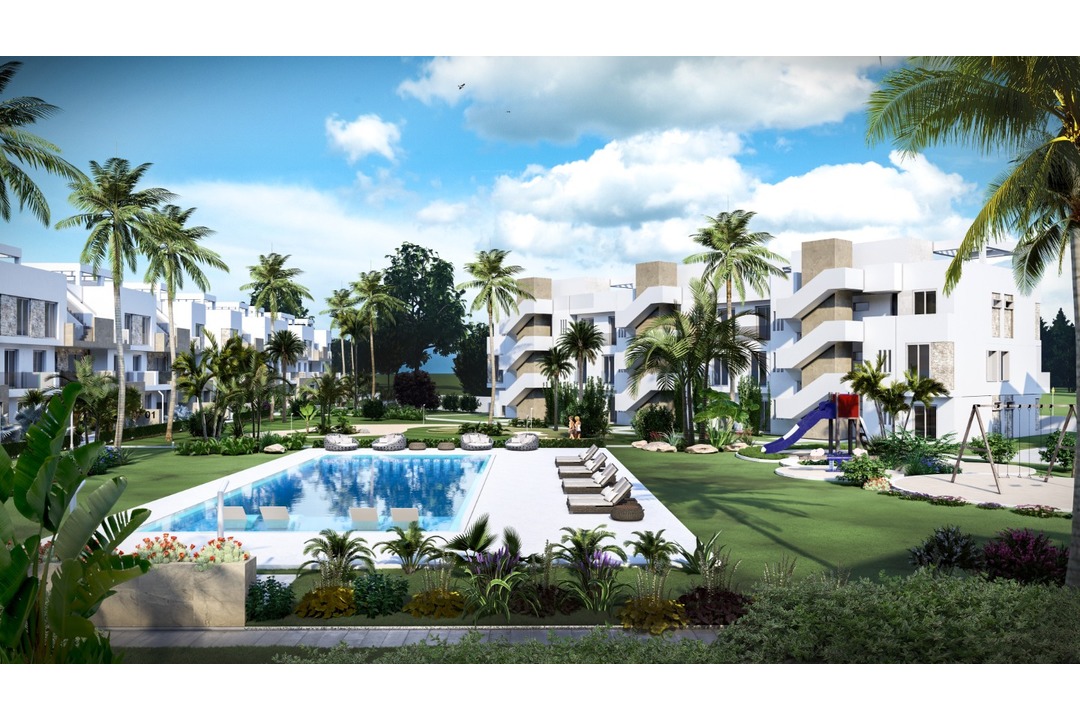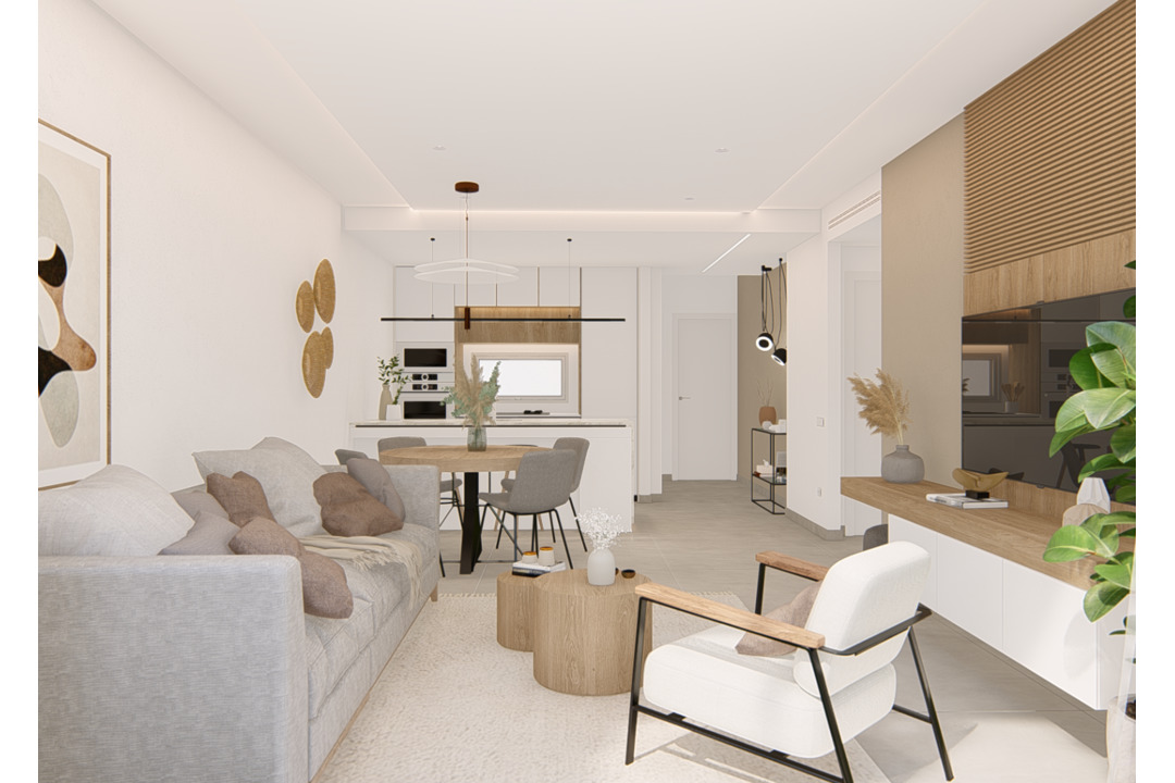 A new development of two and three bedroom apartments located close to the sandy beaches of Guardamar. The apartments are spacious with large terraces and the top floor apartments have a solarium. There is a large communal area with children's pool and play area and adult pool and chill out area.