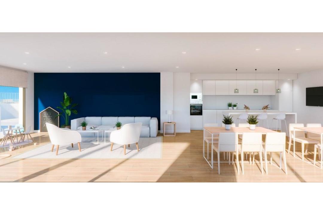 NEW BUILD APARTMENTS IN SAN JUAN DE ALICANTE New Build residential complex of 82 exclusive apartments with 1, 2, 3 and 4 bedrooms in San Juan. In your new home you will enjoy common garden areas and a swimming pool where you can cool off on hot days. The houses have a garage, storeroom and large terraces. Your new kitchen will also include the following equipment: Induction plaque. Filter group. Oven and microwave built into the column, except in homes where, due to the measurements, this is not possible. In these cases, the oven will be located under the induction hob and the built-in microwave in the upper cabinet. Undercounter stainless steel sink with single-lever faucet. The kitchen will have led lights. In order for you to enjoy maximum comfort in your new home, the house will be equipped with a complete installation of hot-cold air conditioning through ducts with supply grilles in the living room and bedroom. The garage entrance and exit doors will be automatic, with an anti-crushing safety device and remote control. If you have an electric car, you won't have to carry out inconvenient works in your garage after handing over the keys, since it will have provision for recharging this type of vehicle. The storage rooms will have a metal door, in compliance with the regulations required by their location. Residential has children's and adult pools, surrounded by the solarium area. A social club will allow you to fully enjoy all the common facilities, where you can celebrate parties, meetings or family birthdays. Residential complex located in the heart of the new expansion area of Alicante, which means that just a few minutes from your new home you will enjoy an incredible shopping, leisure and infrastructure offer. Between them: The public transport network of buses and TRAM, which connects you with the city and nearby towns. The nearby Denia avenue and the A70 motorway that allows you to access major communication routes. The motorway network, the nearby airport, the AVE station or the port of Alicante.