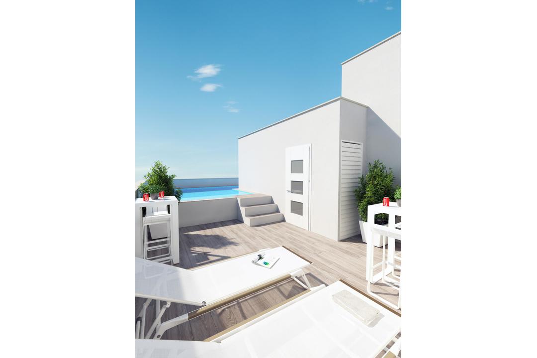 A new apartment located just a short walk to the beach, The apartment has a small terrace provided with 2 Bedrooms and 1 Bathrooms, communal swimming pool Furthermore, this project features pre-air conditioning, built-in wardrobes, and an aerothermal heat pump. This complex consists of 5 floors with a choice of different apartments of 1 or 2 bedrooms with 1 bathroom and a living room with an open kitchen. Each apartment has a terrace and on the top floor there is a communal roof terrace with swimming pool where you can enjoy