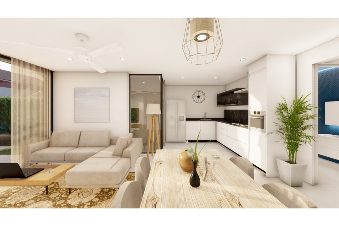 NEW BUILD VILLAS IN LOS URRUTIAS, MURCIA New Build modern villa at 200m from the beach. The luminous villa build over 2 floors, has 3 bedrooms and 3 bathrooms. The living room gives access to the terrace with private pool of 6m x 3m. The open kitchen is fully equipped with household appliances and standard household items. The villa also has an air-conditioning system (hot/cold) and comes fully furnished with curtains and bed linen. The balance between price, quality and location ensures that the house is ideal as an investment for letting. OBLIGATORY TO PUT IN HOLIDAY RENTAL! This small-scale project is the ideal combination of holiday and investment property. If you are looking for peace and quiet and want to be within 200 metres of the beach and promenade, then this is your location. The project is located in Estrella de Mar, an idyllic urbanisation just outside the quiet fishing village of Los Urrutias on the Mar Menor. In this urbanisation you will find a number of restaurants, a supermarket and bars. And all other amenities are available in the immediate vicinity (church, pharmacy, newspapers and much more). Development located 43 km from Murcia, 16 km from Cartagena and only a 10-minute drive from Los Alcazares, a typical Spanish seaside town where there is activity in winter and summer. Los Urrutias is a municipality in the autonomous community (comunidad) of Murcia and is located on the Costa Calida with a view of La Manga, the narrow strip of land (length 22 km and width up to 1.5 km) that separates the Mar Menor from the open waters of the Mediterranean.