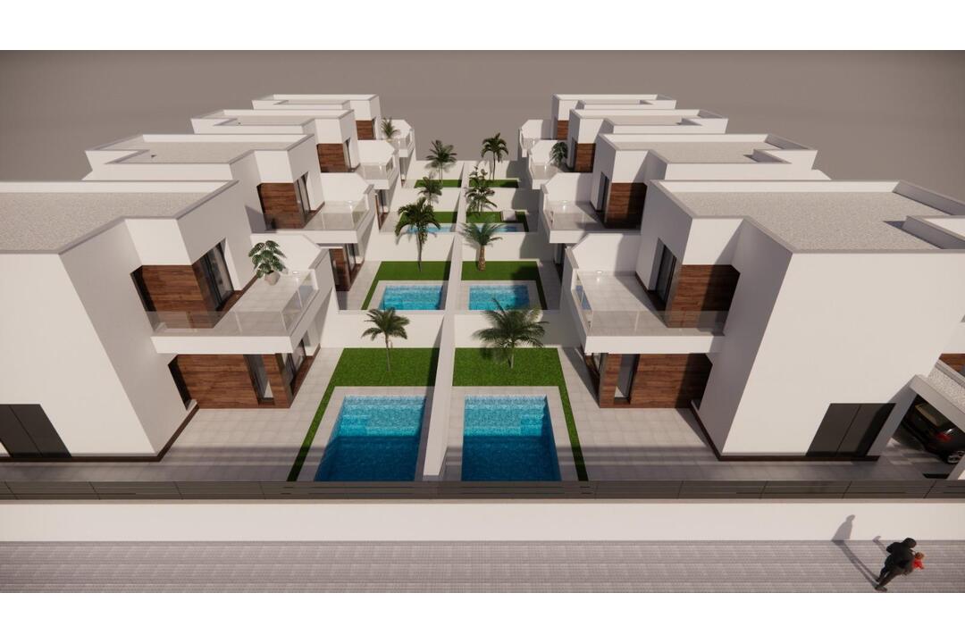 NEW BUILD VILLAS IN SAN FULGENCIO New Built independent villas located in the town of San Fulgencio. Villas of 130 m2 built on the plots of 180 m2, has 3 bedrooms, 3 full bathrooms, 1 toilet, open plan kitchen with the lounge-dining area, build-in wardrobes, terraces, private solarium, garden with private pool and parkins space. There are 300 meters from the town centre with all services, shops, restaurants, town hall, bank. The town of San Fulgencio is situated around 30 minutes from Alicante-Elche airport, 6km from the nearest golf course and just 7km from the nearest beach.