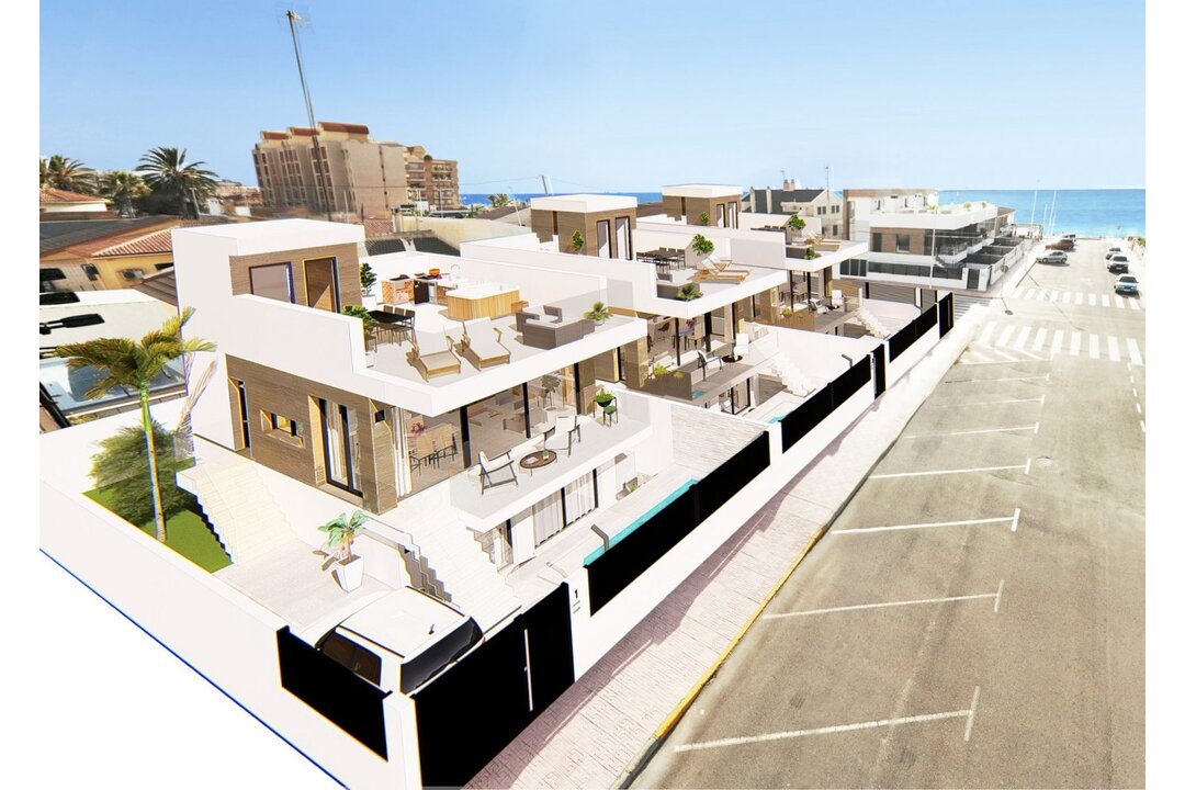 NEW BUILD VILLAS IN LA MATA Unique opportunity to get your exclusive dream home in La Mata, Torrevieja. Perfect location and stunning views just 70 meters from one of the most beautiful beaches of Costa Blanca. Villas build over 2 floors, has an impressive roof terrace with wonderful views. The villa has 4 large bedrooms - 1 on the main floor and 3 on the lower level, 3 bathrooms - 1on the main floor and 2 on the ground floor. South facing villas has beautiful private garden with the pool and parking space. Villas designed in modern style and architecture. The houses are completely insulated for an optimal indoor climate. Superior insulation keeps the heat out in the summer and the cold out in the winter. The villas will attract attention as they are the first in Spain to be built with a new Nordic wall system. La Mata located near Spanish town Torrevieja in the province of Alicante, on the Costa Blanca. It is known for its typically Mediterranean climate and coastline. It has boardwalks with resorts along its sandy beaches. La Mata Beach is the longest beach in Torrevieja and is surrounded by urbanisations. It is close to the Molino del Agua Park. The small Museum of the Sea and Salt houses exhibitions on the fishing and salt history of the city. In the interior, the Lagunas de La Mata-Torrevieja Natural Park has trails and two salty lagoons, one pink and the other green. Alicante airport located 40 minutes away and Murcia airport about 1 hour away.