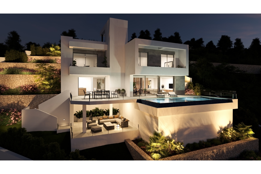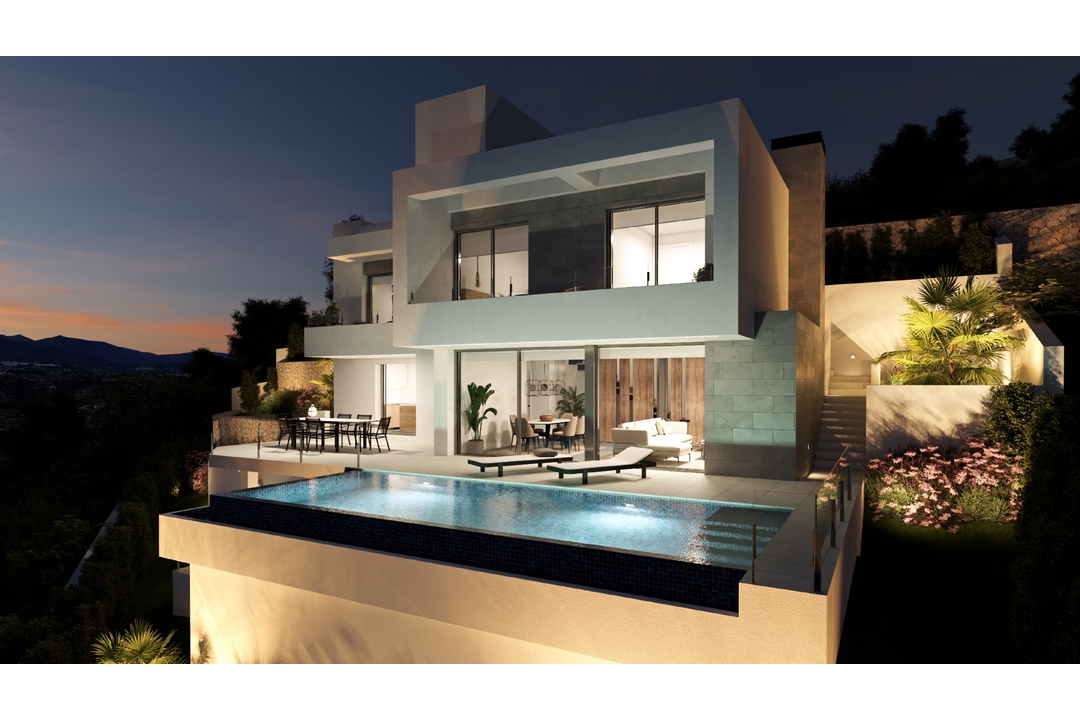 Villa Indigo, modern luxury villa for sale in Cumbre del Sol, Alicante. With 3 bedrooms, 3 bathrooms, sea views, premium qualities, private pool.