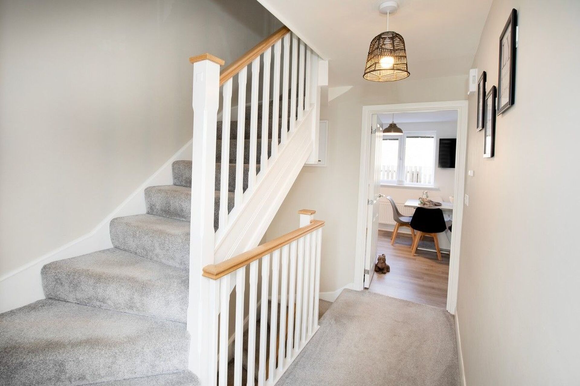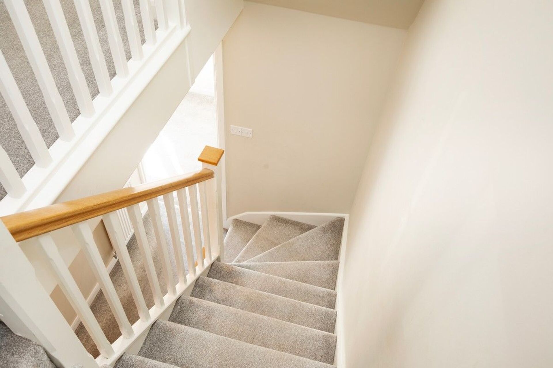 Access to all second-floor rooms. Storage cupboard which houses the unvented hot water tank.